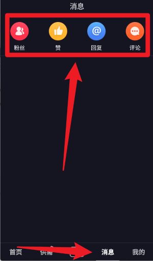 4、点击底部消息页签后,可查看粉丝、点赞、评论等互动信息,方便用户管理账号动态。