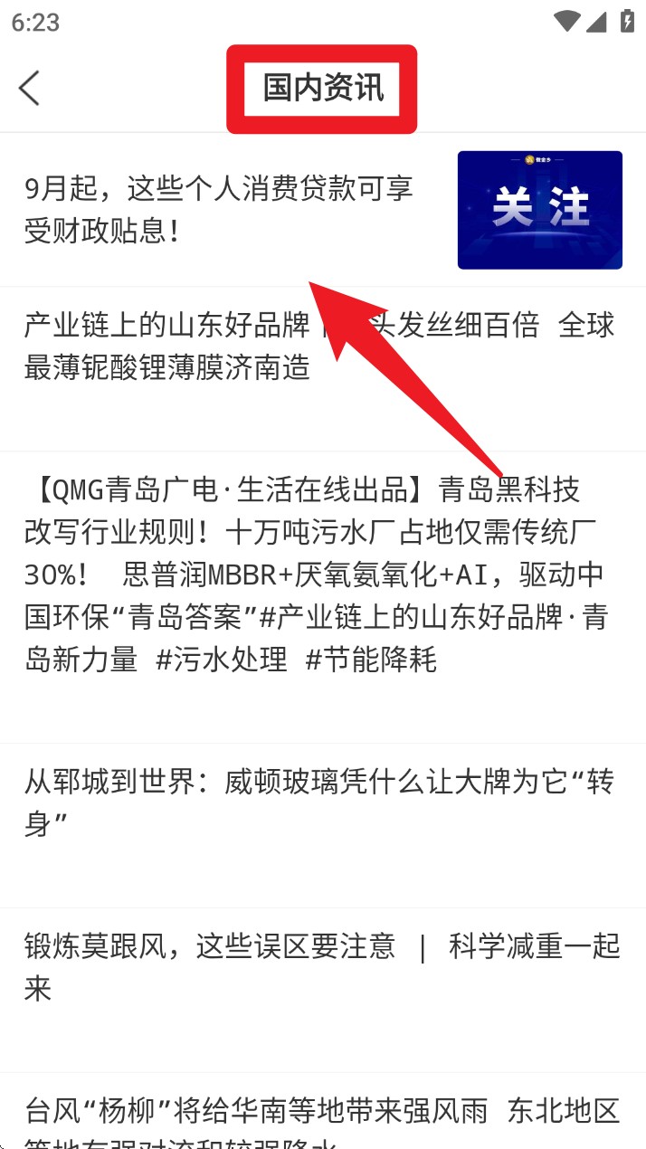 2. 进入国内资讯板块,点击感兴趣的新闻标题,查看详细内容与相关新闻列表。