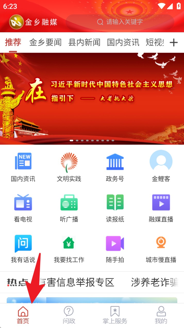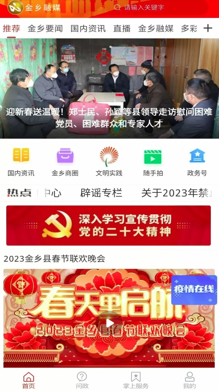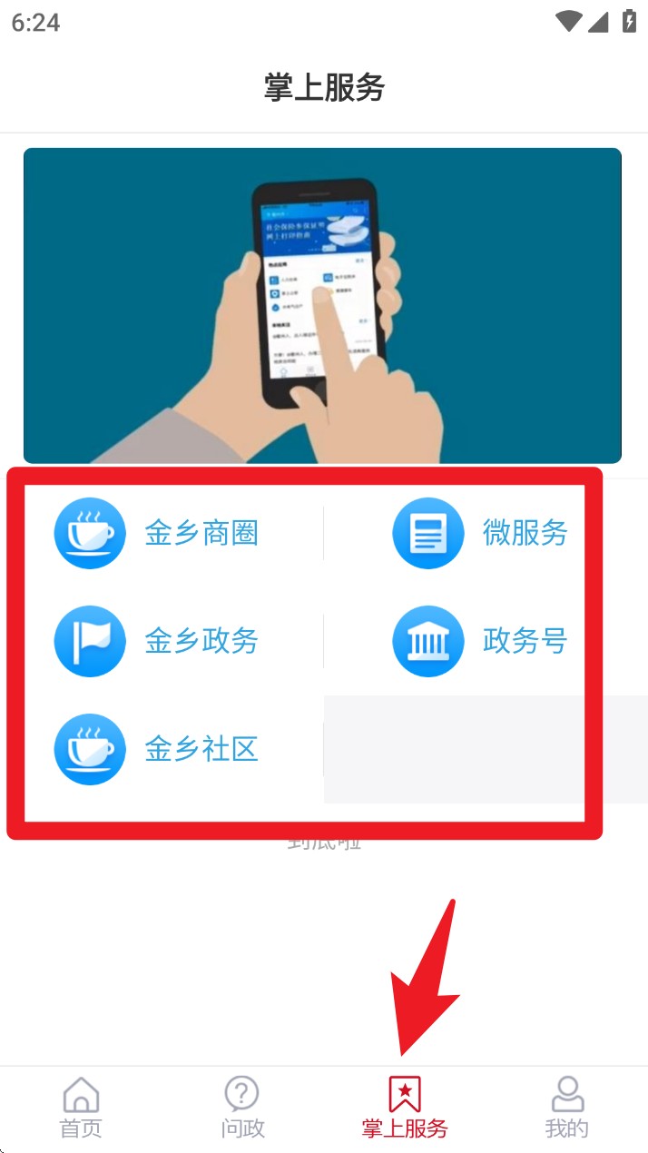 5. 打开掌上服务页面,选择金乡商圈、政务等功能入口,获取便捷的本地线上服务。