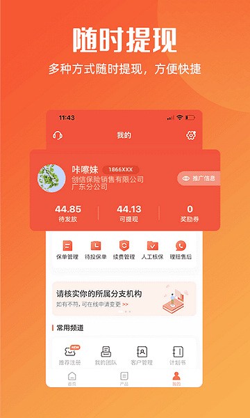 为千万保险代理人提供精选的高性价比保险,一键分享推广所有产品,奖励到账随时提现免手续费,还有专业的客服在推广和理赔过程提供协助。