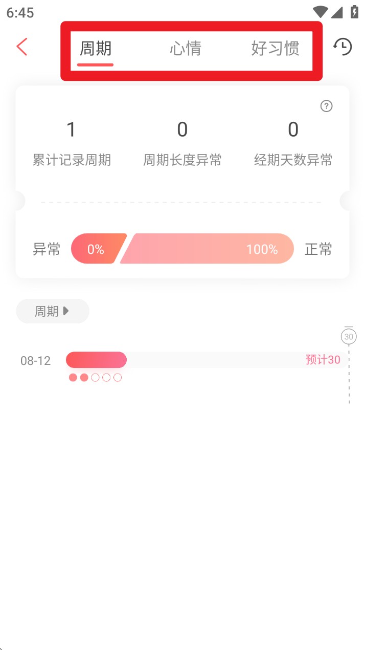 1、经期记录管理:记录每次月经开始与结束时间,支持查看历史周期数据与变化趋势。