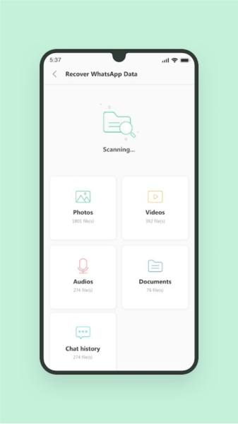 WhatsApp恢复:恢复Android手机上已删除的WhatsApp消息、照片、视频、音频、文档,无需root。