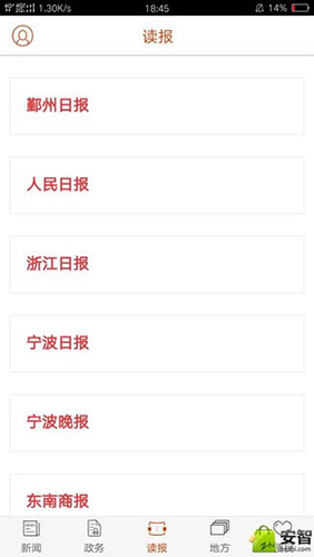 2、进入读报,即可为用户推荐广大地区的日报和晚报;