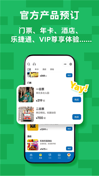支持门票、年卡、酒店住宿、乐捷通(快速通行服务)及VIP尊享体验等官方产品预订,安全正规,满足不同游客需求。