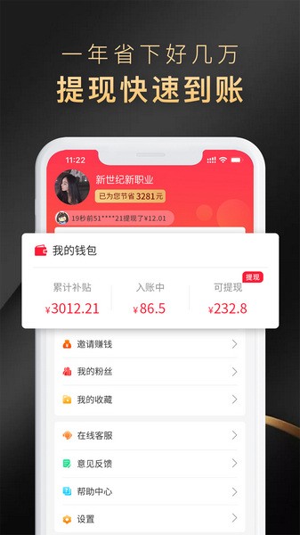 2.购物之前用省公子搜隐藏优惠券,下单后还有最高90%的现金,快速到账,兼职赚钱利器;