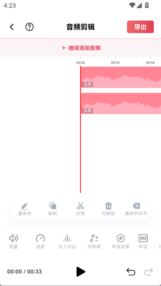 2、分段删除:先分割音频再删除某一段,避免误删重要内容。