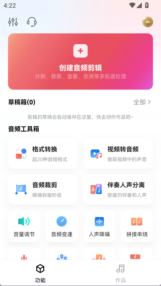 1、打开音频快剪app,点击创建音频剪辑