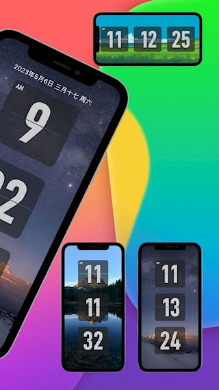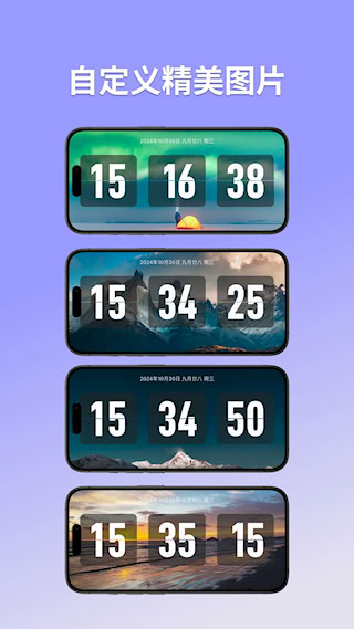 3、内置丰富个性主题,包括经典翻页风格、简约表盘设计及极简数字模式等多种时钟样式与背景,供您自由选择搭配。