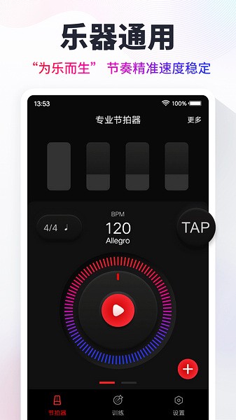 Metronome音乐节拍器是专为喜欢玩乐器的用户设计的非常实用的节拍器软件。通过这款软件,你可以更好地掌握乐器的节奏,使演奏效果更上一层楼。而且,你可以自由选择节拍,将其细分,使得你的音乐更加精准。此外,你还可以在平台内上传自己的曲谱,方便随时进行练习。不容错过的利器,立即下载体验吧!