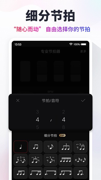 5、音调调整:改变音调的声音,使节拍器更容易听到你的乐器。