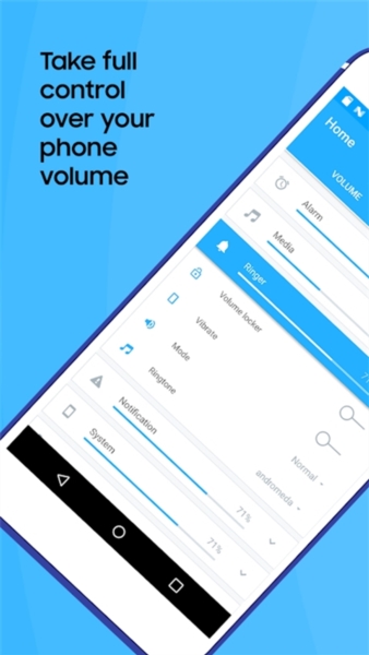 音量控制器app是由Netroken打造的一款功能十分强大的音量调节控制工具软件,通过软件用户可以调节包括闹钟、媒体、响铃、通知等在内的各种声音音量,且软件的操作十分简单,只要在主界面滑动滑键便可任意调节。同时软件还有丰富详细的设置功能,用户可以定制声音模式,适应各类生活场景。另外,软件还拥有防误触功能,不用担心手机放在口袋中时不小心改变音量设置。有需要的朋友们快来下载吧!