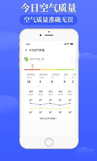6、实时监测空气质量状况,精准预测未来空气变化趋势,让你及时掌握空气指数,有效规避污染与雾霾影响。