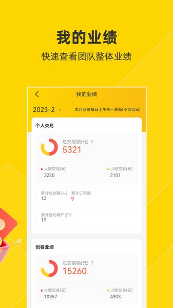 3、可视化数据:将团队业绩和个人业绩的各项数据进行可视化管理,方便用户清晰查看各项交易数据。
