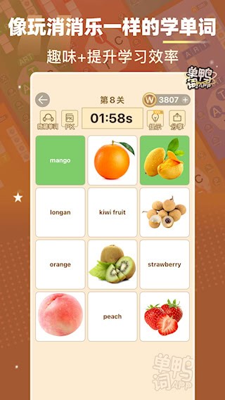 1、单词消消乐・以消消乐游戏的趣味玩法,轻松完成单词的学习与记忆;