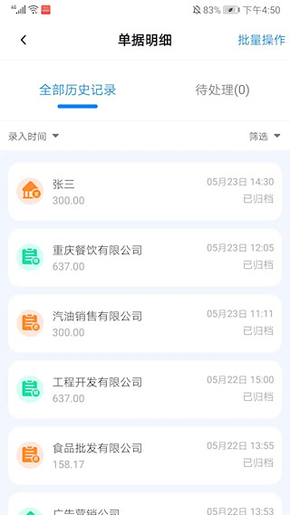 2、查看历史单据记录点击进入单据明细专属界面,所有过往的收支、发票等记账记录都会完整呈现,方便快速回溯;