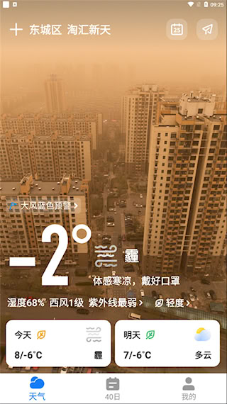 2、当软件成功定位到用户当前所处位置后,就能直接查看该地区的实时及后续天气状况