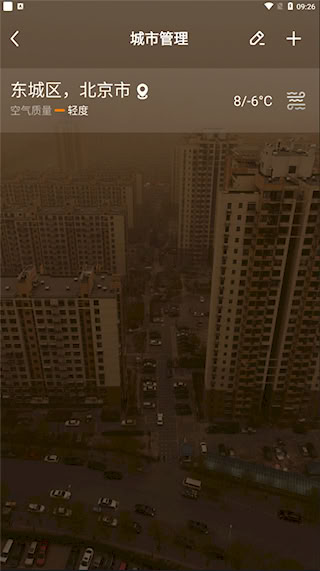 3、若有切换查看其他地区天气的需求,可点击页面左上角的加号按钮,进入城市管理界面再次点击加号完成地区添加