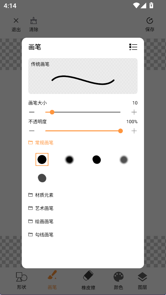 2、画笔种类丰富:内置多种绘画工具,包括水彩、油画、铅笔等,每种都可调节粗细与透明度,适配多样创作风格。