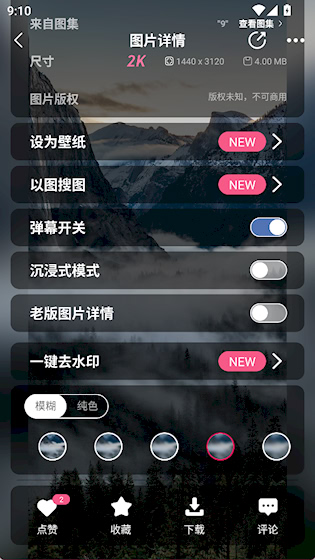4、图片管理便捷:可对喜欢的图片进行收藏、下载、设为壁纸或分享至社交平台,操作路径清晰,提升日常使用效率。