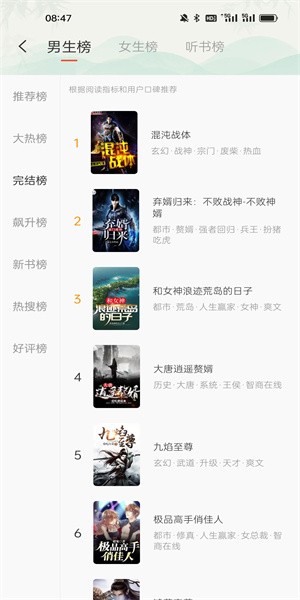 2、内容运营能力突出,通过24小时滚动的热门排行榜和基于权威数据的智能推荐,高效引导用户发现当下最流行、最精彩的小说。
