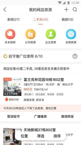 2、在我的房源板块,能够清晰查看所有可出售房源信息,便于管理与推介