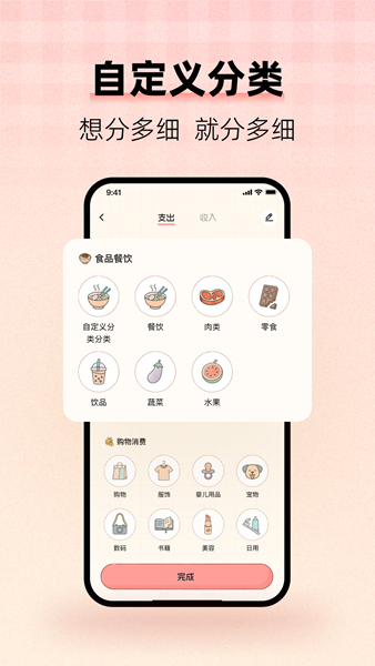 1、采用智能分类系统,用户输入记账明细后,软件自动分类,简化记账流程,让支出管理清晰有序。