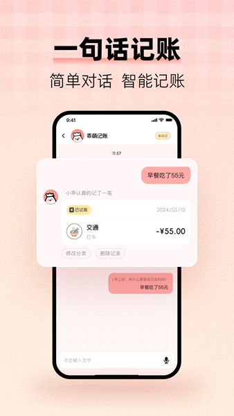 3、支持语音和文字记账,满足不同场景需求,用户可依习惯选择输入方式,提升记账效率。