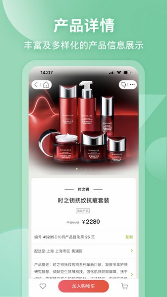 全新首页能够基于用户属性,显示定制化的版块内容。从快捷入口、当月折扣到奖励计划,通过对每个信息精准地控制与设计,将众多内容更有效地呈现给用户。新品上市专题推荐融合了多元化的内容和商品购物车的结合形式,鼓励顾问进行探索性购物、获取知识或分享事业发展经验。