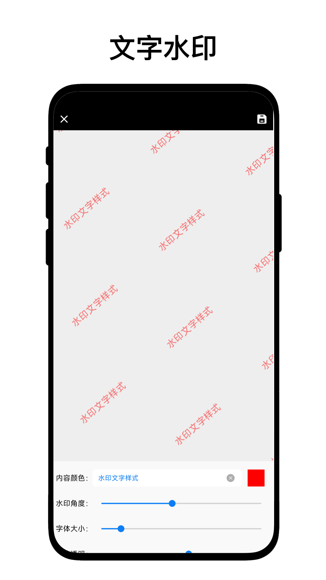 4、水印便捷:支持自定义编辑文字水印,可自由输入文字,还能调整字体角度、大小和透明度
