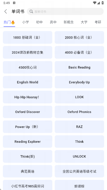 3、通过修改教材选项,可重新选择或更换对应的词书内容,匹配学习需求;