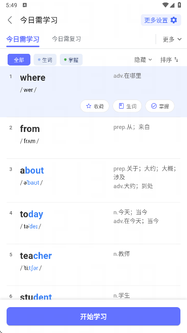 4、设置完成后,点击开始学习,即可查看当日学习任务;