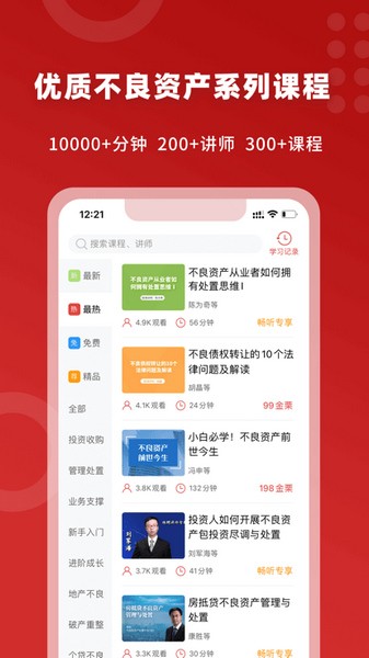 火栗网课程App是一款专为从事不良资产行业的从业者必备的手机工具软件,在这里,不仅内置海量真实项目视频方便你更加直观的进行有效学习,更有着众多大咖博主在线教学实践案例,而且火栗网拥有着全行业机构与人物图谱,可以有效帮助你发布对接业务需求来结构化自己的知识内容,实操化自己的技能水准,毕竟只有亲身实践过才能够更好的服务于他人,服务于自己。