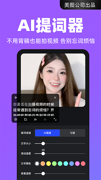 【AI提词器】口播不用背稿,告别忘词烦恼!开拍app的AI语速模式智能跟随口播速度滚动字幕。