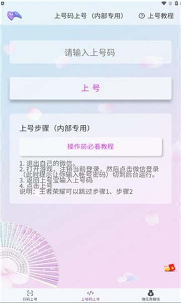 上号宝是为手游玩家们打造的一款游戏扫码上号软件,旨在解决游戏代练、租号、借号等方面的账号安全问题,也能帮助游戏代练们实现一部手机同步管理多个游戏账号。目前上号宝支持王者荣耀、和平精英等百余款手游的扫码登录,不需要切出游戏到微信与QQ等平台登录,减少密码输入错误以节约登录账号花费的时间。只需要打开一款软件,就可以提供上百块不同游戏的登录二维码。