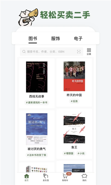 品类丰富的二手书、服装和电子产品,均由多抓鱼消毒和翻新,价格 2-4 折,用划算的价格买到真正的好东西。