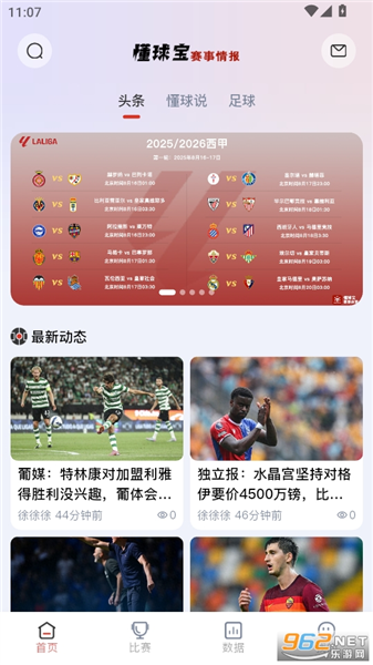 懂球宝是一款拥有足球、篮球赛事资讯与数据的软件。它里面包含了英超、西甲、德甲、欧冠、中超等足球赛事,以及NBA、CBA等篮球赛事,这些都会显示实时的比方、赛程、积分榜、射手榜等各种数据。每周五还会更新五大联赛深度解读。用户还可以加入各种社区,在里面发布帖子来讨论或者是点赞评论其他人的帖子。该软件还可以设置比赛的闹钟,避免用户错过场次。