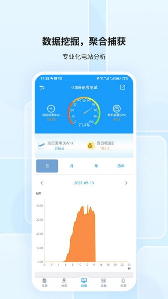 应用基于电站监测的数据而自动生成了图表,能够以图表的方式掌握电量变化情况。