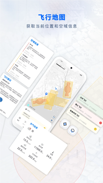 全国空域信息实时更新,适飞空域、机场和禁飞区一目了然,助您轻松规避风险,飞行安全又合法。