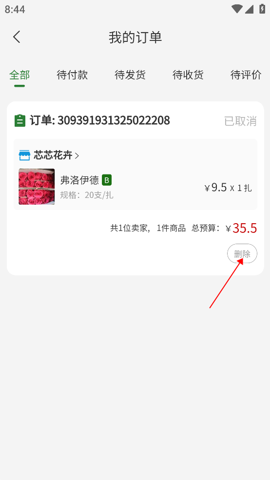 2、进入【全部订单】,找到要删除的购买记录。