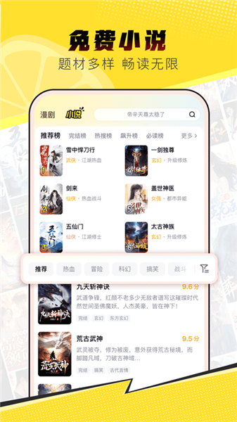 1、一打开柚漫剧app官方版就能看到两个大板块,漫剧和小说,各种类型应有尽有。