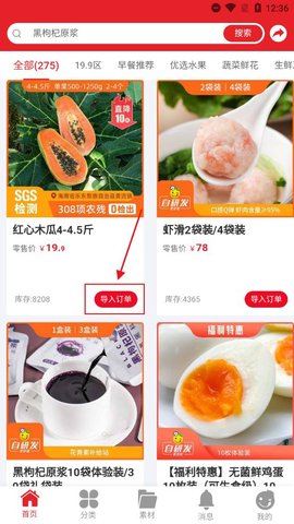 2、导入订单:可将心仪商品导入订单完成下单,点击导入订单即可执行下单操作。