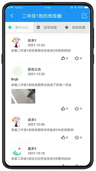 3、点击班级相册查看最新照片,可以保存喜欢的图片,或对动态进行评论互动。