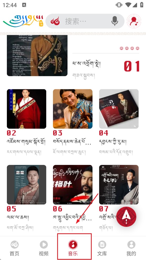 3、进入“音乐”模块,能收听排行榜、歌单及专辑内容,畅听各类藏语歌曲。