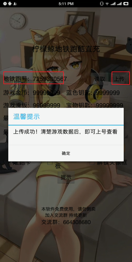 4、打开下载的地铁跑酷直充 APP,填入跑号,其他信息自行填写后点击上传。
