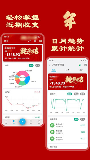 1、快速记账:只需几步操作即可完成一笔收入或支出的记录,流程简化,节省时间,适合日常频繁使用。