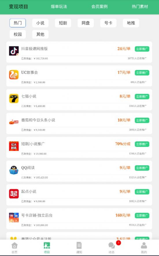 1、任务类型丰富多样:视客智创涵盖视频推广、小说分销、应用试玩、问卷调研、商品种草等多种任务形式,用户可根据自身兴趣、时间安排和技能偏好灵活选择,轻松匹配适合自己的赚钱方式。