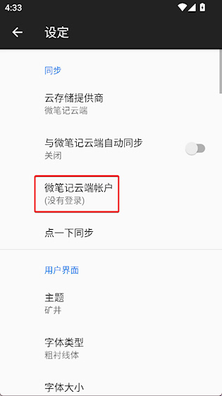 2、点击微笔记云端账户