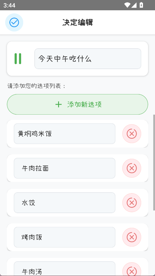 小决定转盘喵是一款专为解决日常选择困难而设计的趣味工具,当你面对多个选项犹豫不决时,只需将这些选项输入到应用中,通过转动自定义转盘、抛硬币、掷骰子等方式,快速获得一个随机结果,适合在生活、学习或聚会中使用,帮助人们轻松摆脱纠结状态。