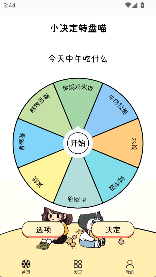 1、在首页点击【开始】,从转盘选项中获取随机结果