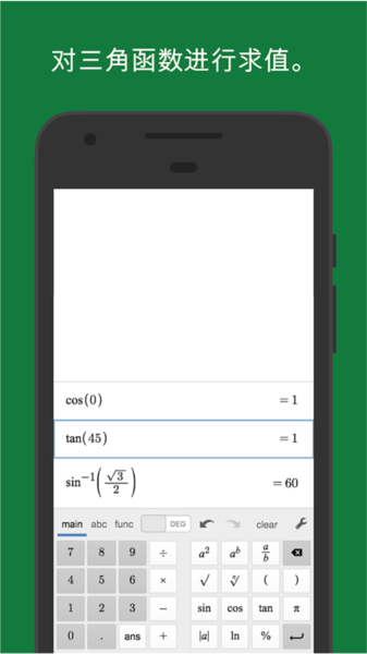 1、主键盘: Desmos科学计算器的主键盘设计直观,包含了数字键盘、基本运算符以及基本的三角函数、根、分数、指数和绝对值等功能。这些功能的布局合理,方便用户快速进行各种基础计算。